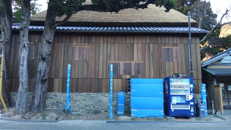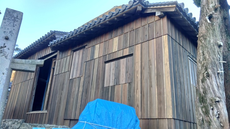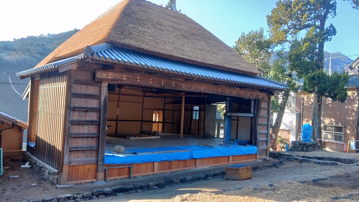 そして舞台裏側(道路側)の戸板が付きました。こちらは全て新しい部材に変わったので、ずいぶん小綺麗になりました。こっちだけ見ると新築みたいですね(笑)