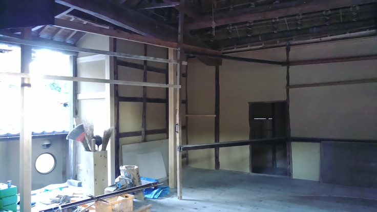 舞台の上手側。強度の関係で交換した真新しい柱が目立ちます。本当は元の柱と同じように黒色に塗装したいんですけども・・・。どうなるんでしょうね。