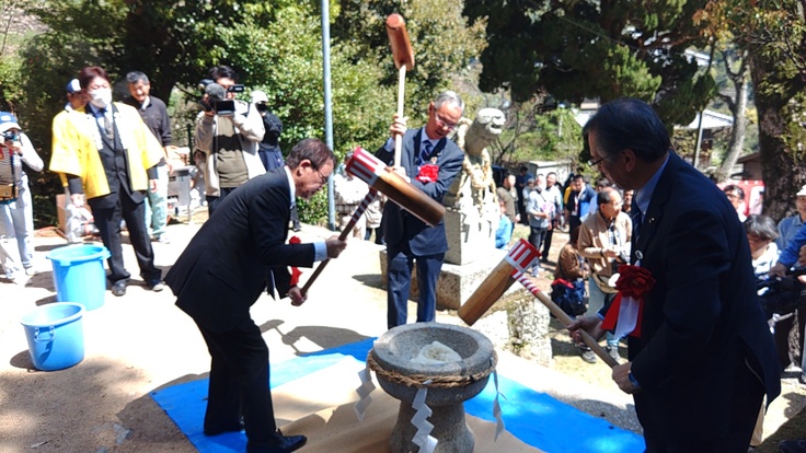 その後、本殿前で来賓の方々によって餅つきが行われました。