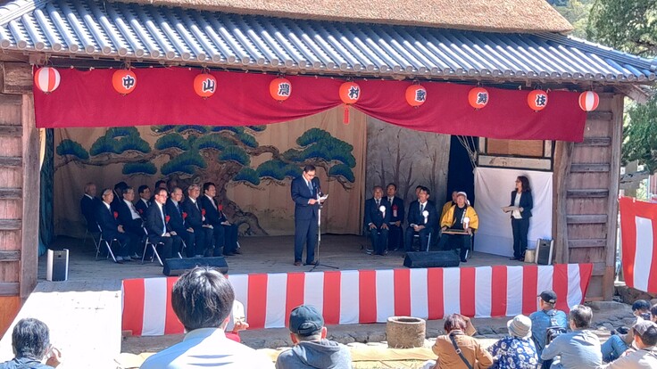 本日、式典に参加してくださったたくさんの皆様、本当にありがとうございました。中山農村歌舞伎はこれから再スタートを切り、この伝統行事を未来へと繋ぐため頑張って参ります。これからも中山農村歌舞伎をよろしくお願い致します。