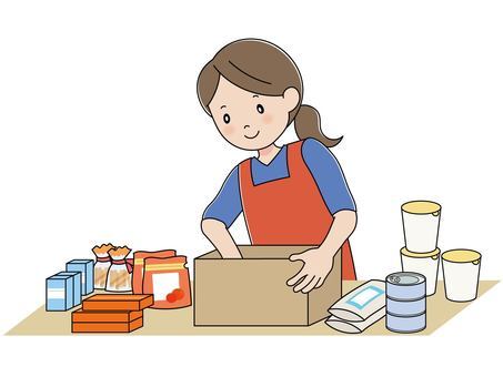 支援物資購入費(20万円:米、野菜、保存食、マスク、生理用品など)