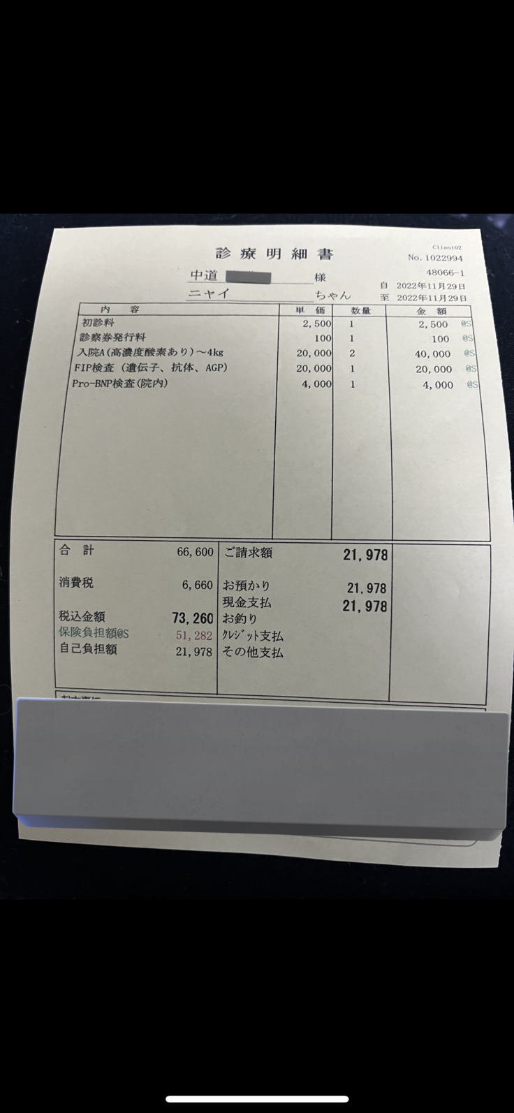 ✖️12週間分🟰958,320円が、ニャイのfip治療にかかってしまい、そこから更に急ぎでは無いのですが心臓の事もあり、さらに費用が増えてしまいます。。