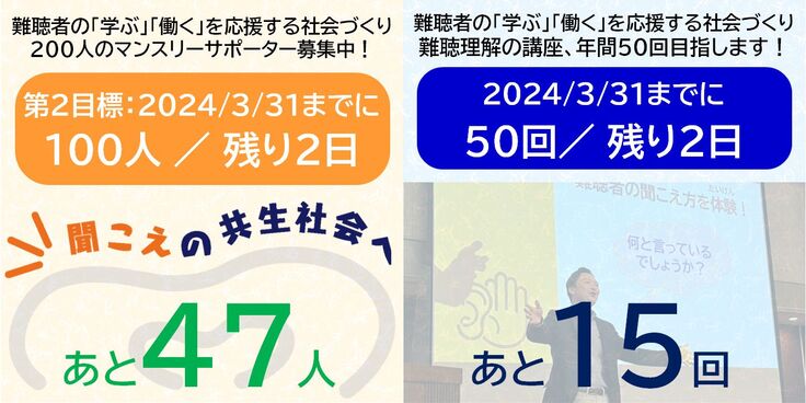 難聴のことを知らない人、知っている人どちらの方にもためになる内容を考えて、広く知ってもらい、また仲間を全国に広げていきたいと思っています!