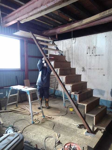 残すところ四日になりました、みなさんのおかげさまでここまでこれました、多くの皆さまに感謝しこれからの大改造にはいります、トイレ作る所土どめするため二階の外階段を解体、で納屋から二階への階段をしあげます。