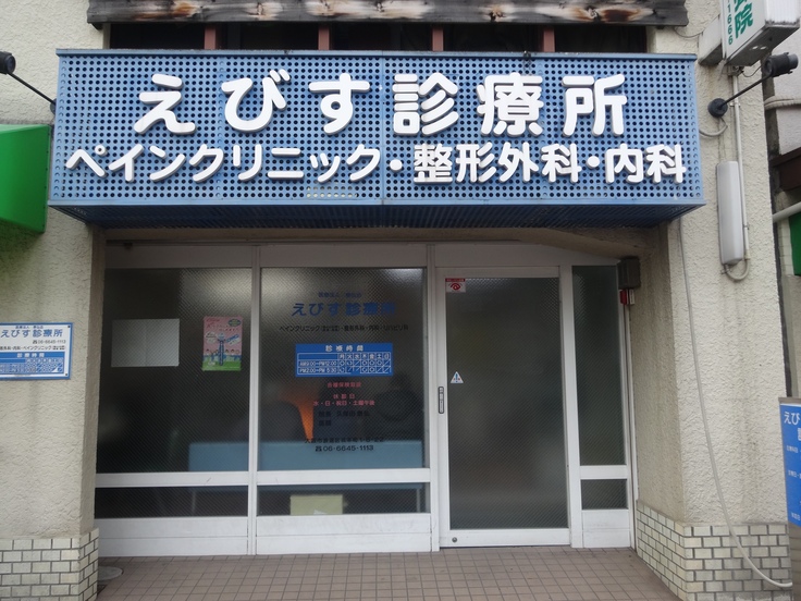大阪メトロ御堂筋線大国町駅から徒歩2分の場所にある「えびす診療所:は整形外科・ペインクリニック・内科で日々の診療に励んでいます。本来の専門はペインクリニックで様々な神経ブロックに対応しており、在宅にて末期がん患者等の痛みの治療にも参加してきました。