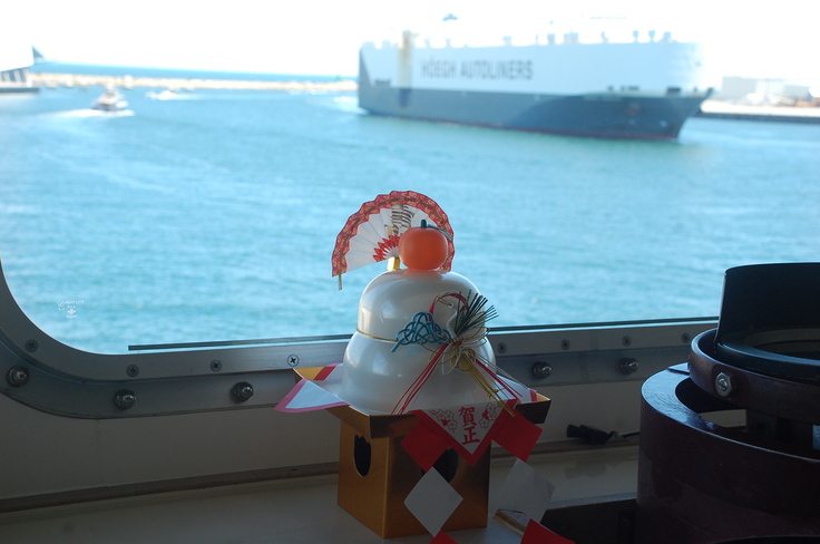 写真は2019年1月1日のもので,海鷹丸のブリッジです.ことしも同じ場所にお供えされていると思います.
