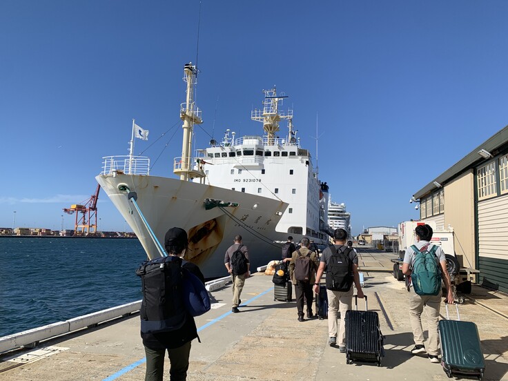 1月6日に成田空港から出国し、メルボルンを経由して7日にオーストラリアのパースに着きました。その後、フリーマントルへはバスで移動し、海鷹丸に乗船しました。こちらは真夏、フリーマントルは太陽がとても眩しく暑いです。明日から南極航海に向けて準備が始まります。