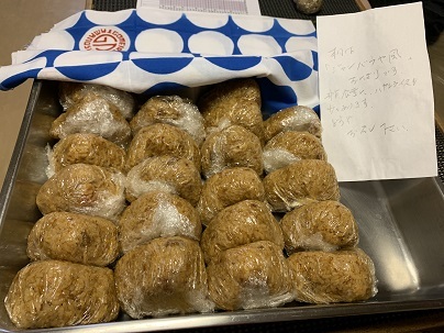 賄いの皆さんが気を利かせて毎晩おにぎりを用意してくれます。