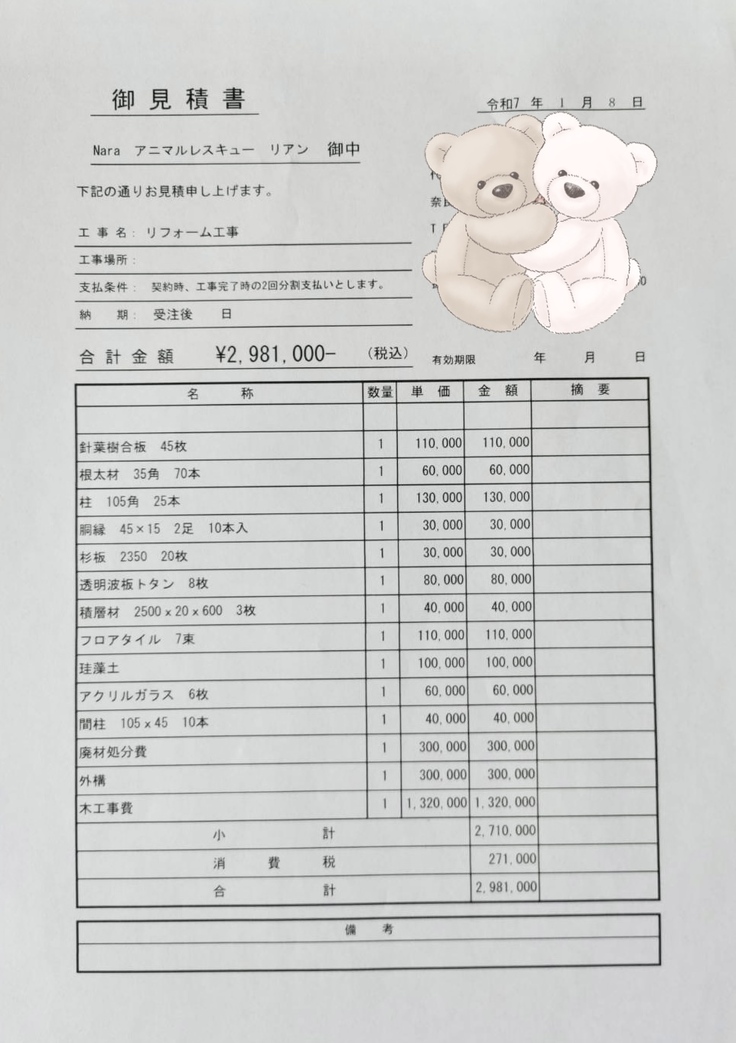 今月末に新しいシェルターに引っ越し予定にしてます。なかなか多忙なためお手伝いに行けてませんが、順調にリフォームを進めて下さってることに感謝してます。
