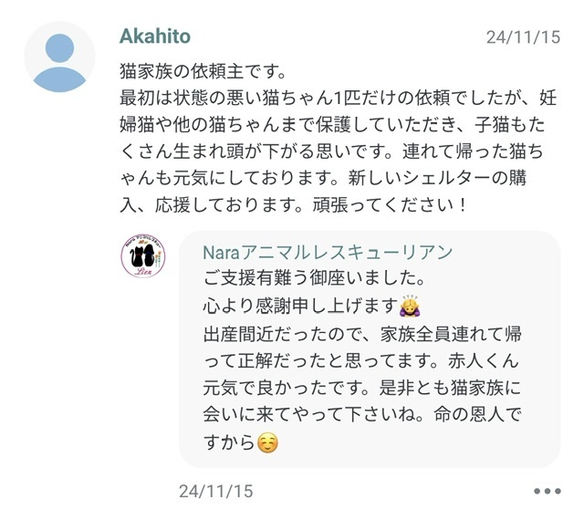 ボロボロの猫小屋で生活してた猫家族の『命』を助けて下さった依頼主さんから、ご支援をいただきました事を感謝申し上げます🙇♀️