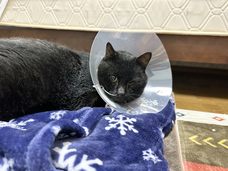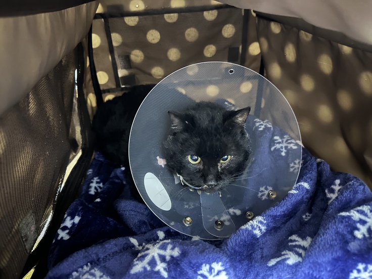 1日だけの入院でしたが、治療の甲斐があり少し動けるようになりました。うつろな目にも生気が出てきたように思います。