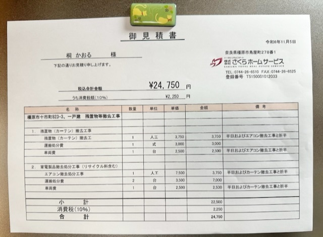 ※大工さんにリフォームの見積もり書を再依頼しました。詳細わかり次第、皆さまにご報告させて頂きます。
