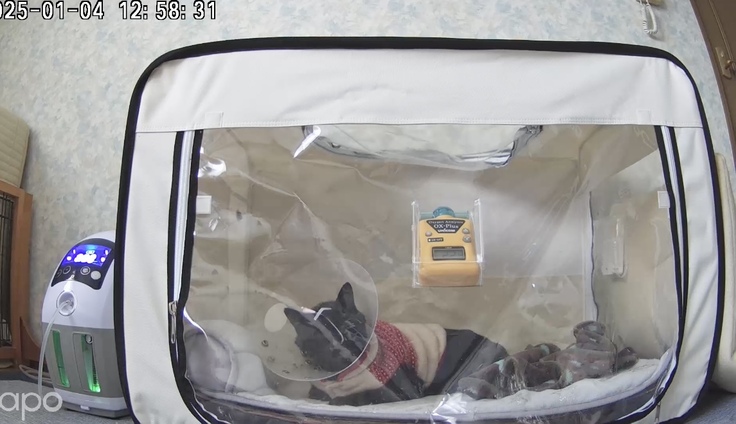 低血糖になっていないか心配でしたが、酸素室で大人しく寝てました。