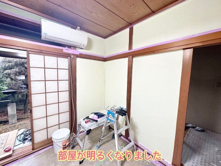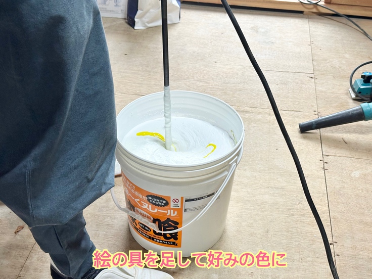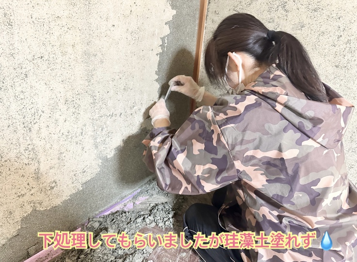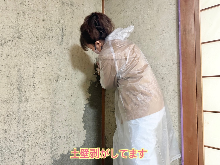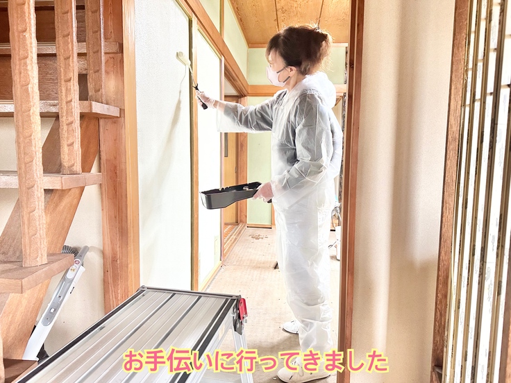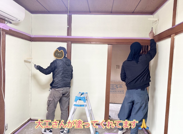 左官屋さんの人件費削減のため、大工さんが塗装して下さってます。有難う御座います🙇♀️