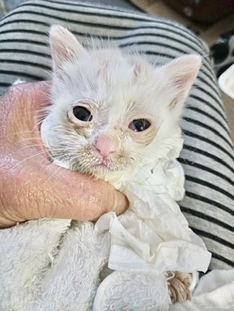 段ボール箱に1匹だけ入れられて遺棄されてた子猫の保護依頼がありました。