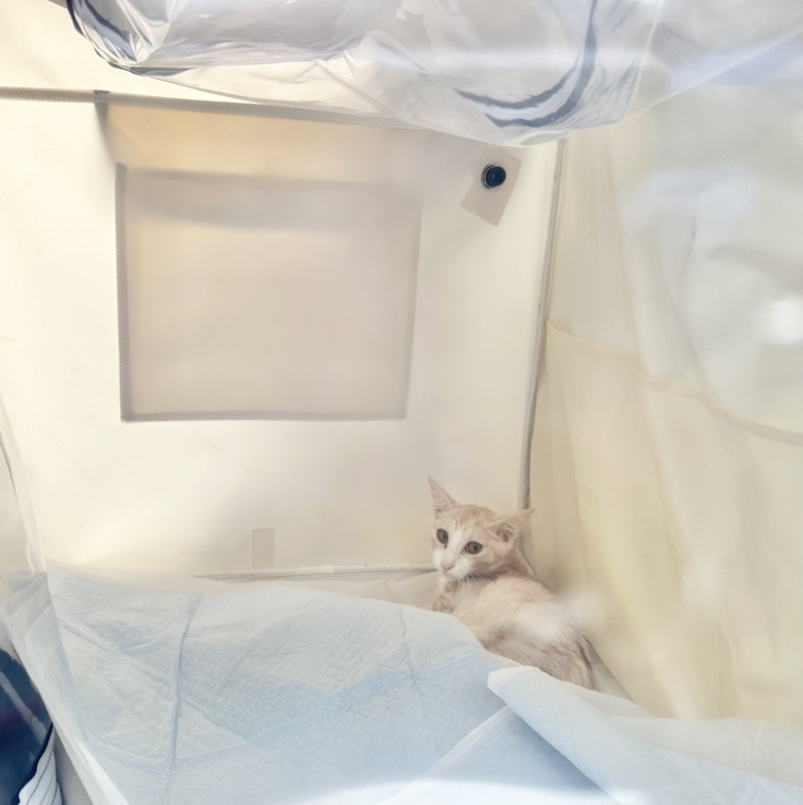 酸素室に入っていると楽そうで、ご飯も食べているので呼吸状態が良くなるまで酸素は必須!!