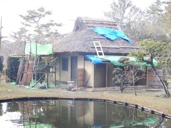 【茶室八窓庵】茅ぶき屋根の整備、外壁、内装の改修を行いました。