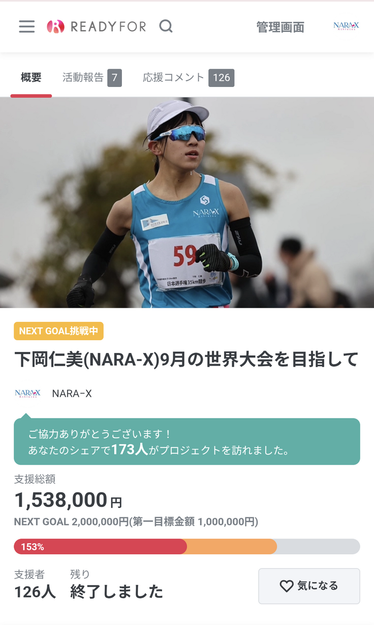 また早急にこちらからご連絡をさせていただかないといけないコース(レース前後の動画等コース)や、下岡仁美から直接Tシャツ等のグッズを受け取りをご希望されるコースをご支援いただいた皆さまに関しましては明日6月1日(日)から岡﨑のメールアドレスより順次ご案内を含めた内容のメールを送らさせていただきますので、よろしくお願いいたします。