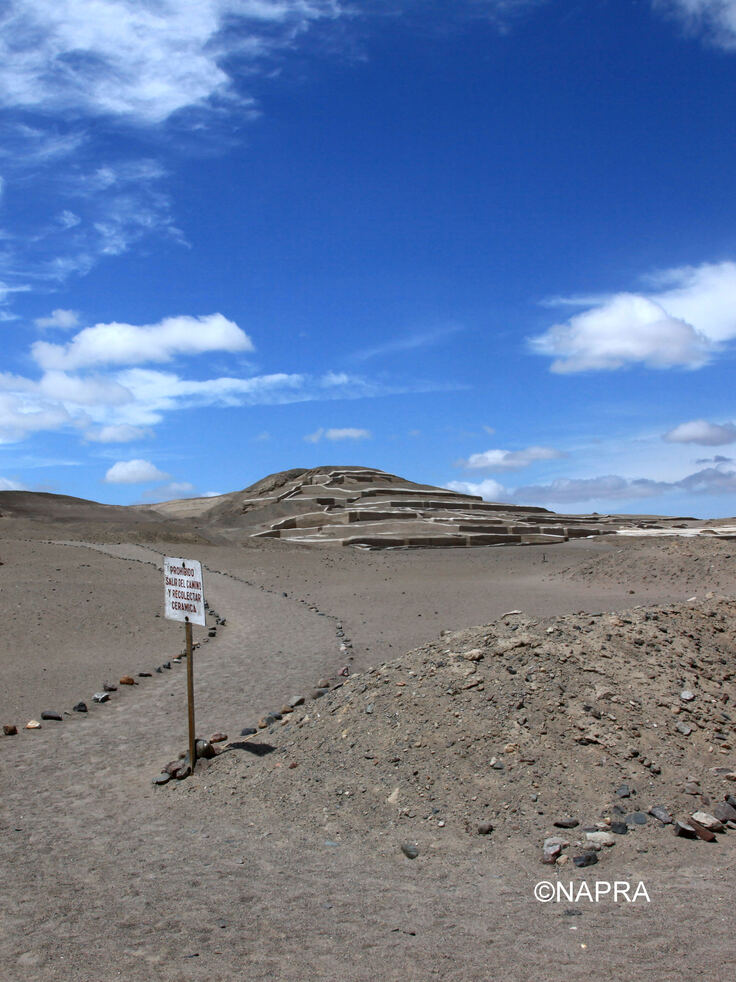 もともとの丘の上に日干しレンガで造られた、神殿のような大規模な建物の跡がいくつかあります。一番高い所からは、ナスカ台地を一望にできます。ナスカ文化、地上絵を研究する上でとても重要な遺跡です。