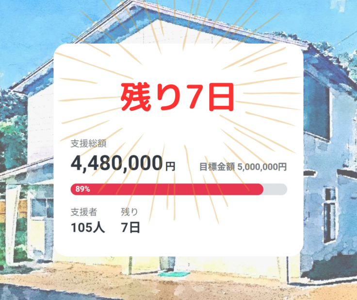 クラファンがはじまって残り1週間を切りました...!そして現在、89%の達成率です!