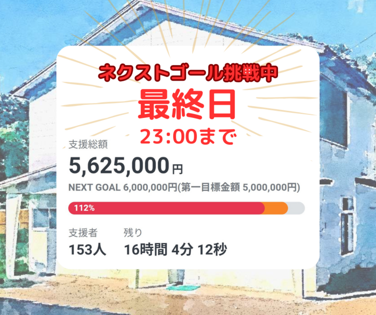 600万円の達成を目指して、最後の最後まで皆様のご支援どうぞよろしくお願い申し上げます!