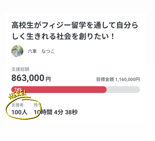 ただの高校生の私に100人の方がご支援という形で応援してくださっていることに感動しています😭