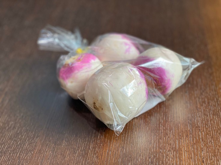 表面がほんのりあやめ色に色づいた見た目のカブです。