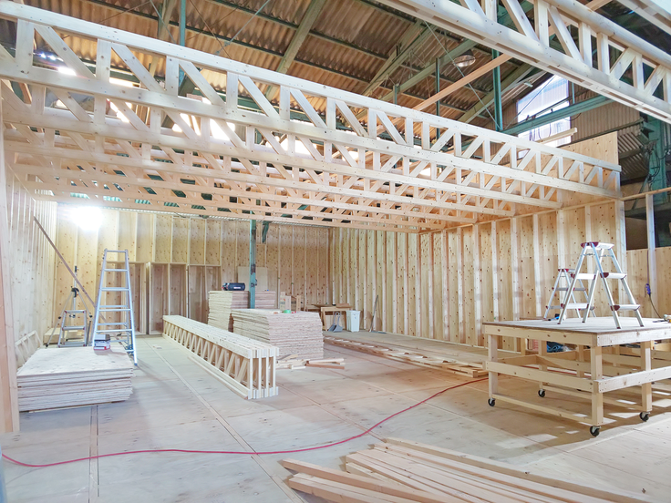 工場のコンクリート床は経年劣化によって傾きや段差が生じ、そのまま使用すると家具製作に支障が出るため、工場のなかに工房を造るという大規模な改装を始めました。