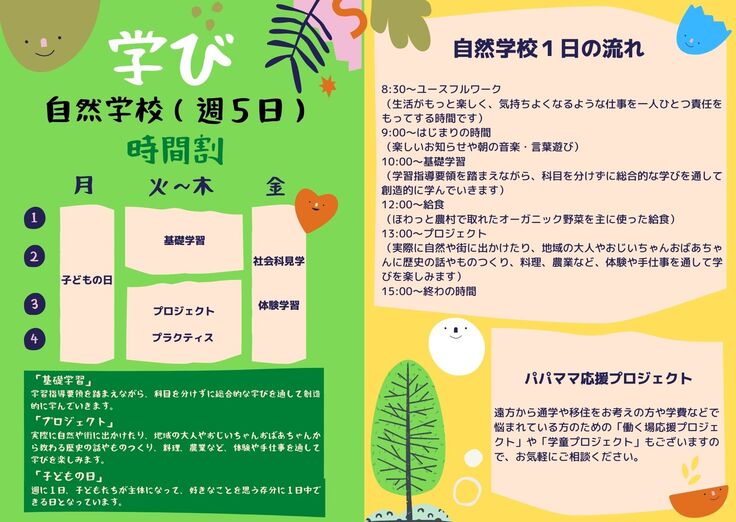 「基礎学習」「プロジェクト」「子どもの日」この3つの授業で、本当の自由の獲得を目指します。