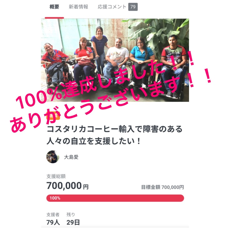 この度クラウドファンディング開始から4日目で目標金額の70万円を達成しました!!!