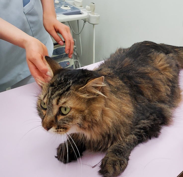 精密検査の為、検査機器の揃っている病院で検査を受けたところ「FIP(猫伝染性腹膜炎)以外考えにくい」との診断を受けました。(精密検査の結果、後日陽性と診断されました)