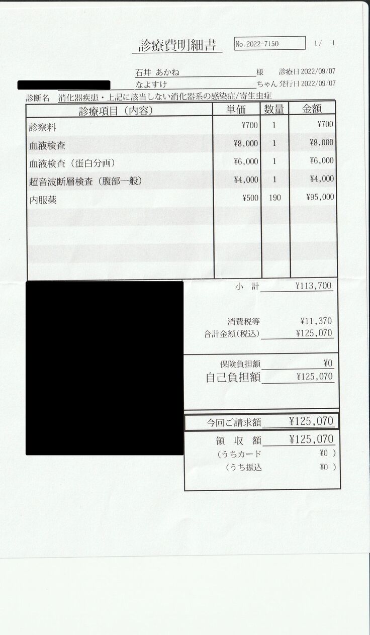 本プロジェクトで治療費・薬代(初期検査費除く)と手数料を含め76万円を支援していただきたく、目標金額にさせていただきました。