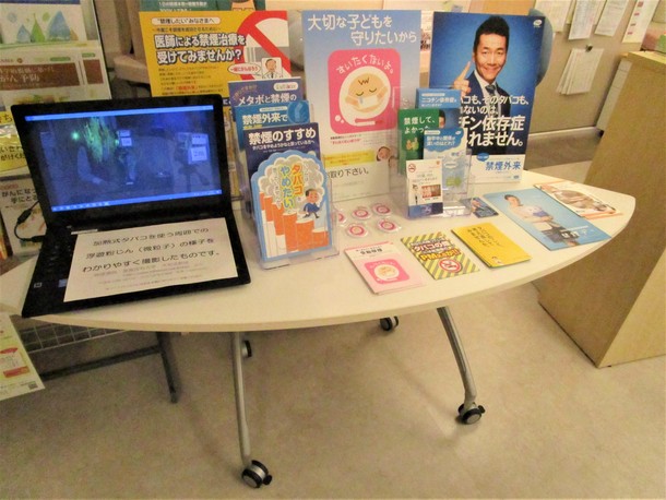 国立がん研究センターでは世界禁煙デーである5月31日から6月6日まで「国立がん研究センター 禁煙週間」として禁煙に関する啓発を行いました。サポートセンターにも禁煙に関連する資料が展示され、患者さんやご家族の方に禁煙に興味を持っていただく機会になったようです。