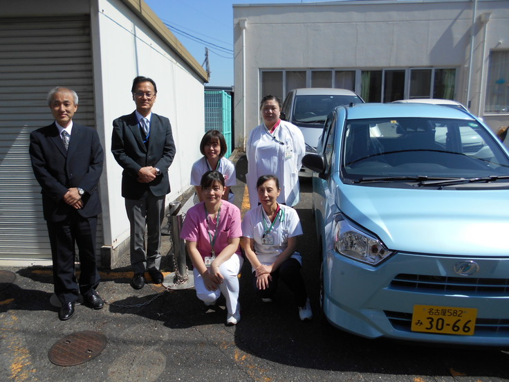 納車時には理事長、看護部長、在宅訪問チームの看護師で記念撮影をするなど、全員で本プロジェクトの達成を改めて喜び合いました。皆様には改めて感謝を申し上げます。