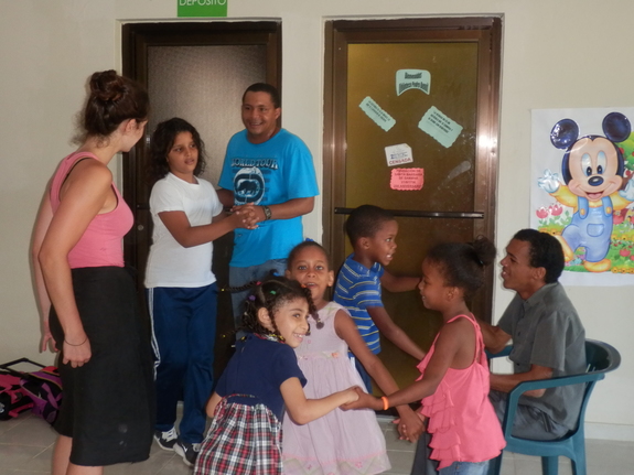 上の写真は、子どもたちがダンス仕様の「ラ・クカラーチャ」に併せて踊っているときに撮ったものです(左にいるピンクの服を来た人が私たちのボランティア仲間です)。