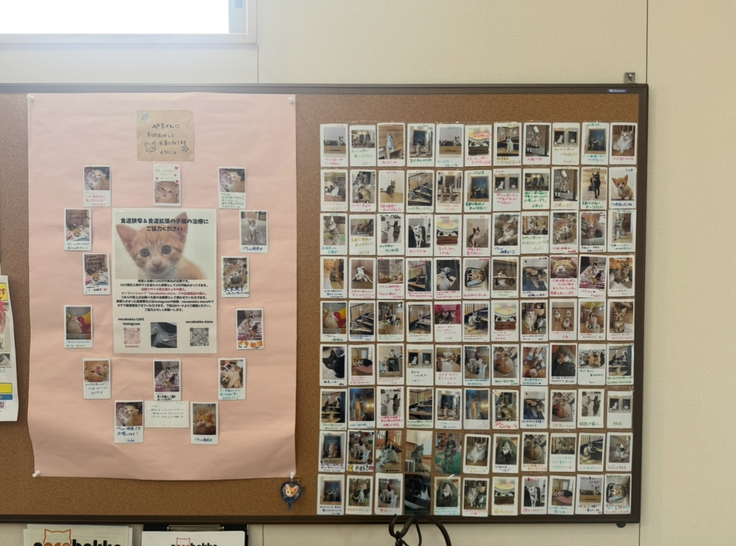 リターンは保護猫のチェキ1枚に、応援メッセージとお名前を代理で記載し、店舗の専用スペースに貼らせていただきます。