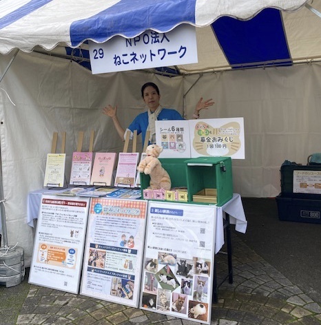 ねこネットワークの普段の活動、譲渡会のお知らせ、保護猫の現状、不妊去勢手術の必要性などを、ブースにお立ち寄りいただいた方に直接お伝えいたしました。