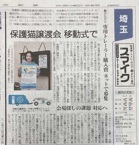 今朝の東京新聞 埼玉版に今回のクラウドファンディングの記事が大きく掲載されました。