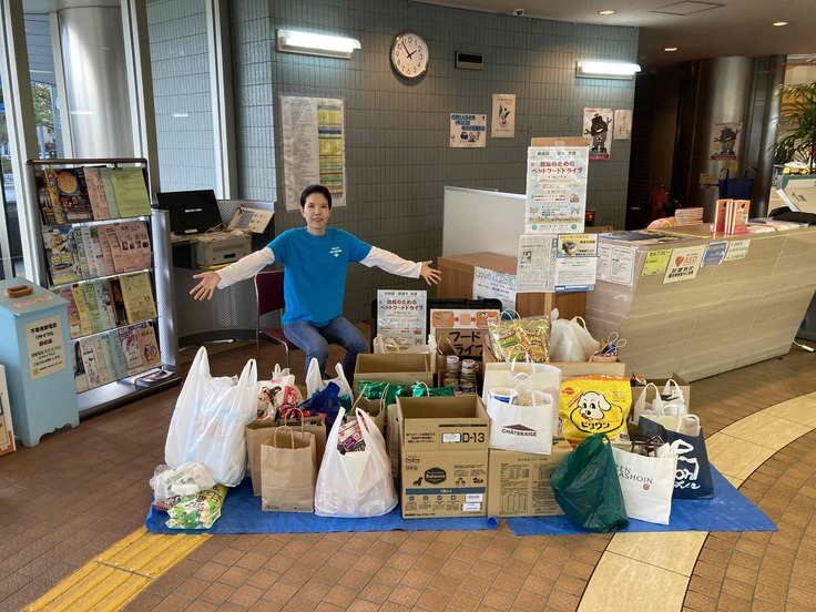 私たちはペットフードドライブで参加させていただき、たくさんの寄付品が集まりました。
