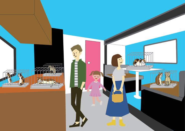 ひと家族ずつご案内をして、保護猫たちと触れ合い、猫生を全うするまで責任を持って迎えられるか検討していただく場所になります。