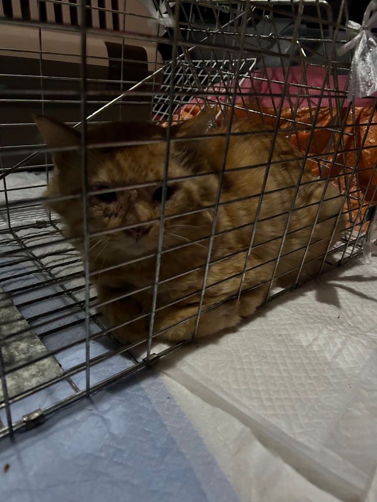 1ヶ月半、粘って粘って今朝ゴミ捨てに行こうと外に出たら捕獲器の周りをウロウロしている茶トラくんが!