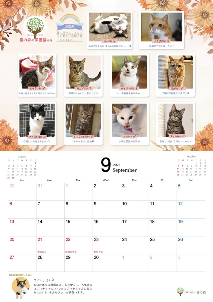 現在猫の森では2026年猫の森チャリティーカレンダーを販売中です!