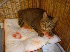 4匹のノラ猫は捕獲し無事に不妊去勢手術を済ませ、人に馴れていない3匹のメス猫は元の場所に戻して。片足が無く、いつもボス猫にいじめられ泣き叫んでいたいたオス猫だけは我が家に迎え入れることにしました。障害を持ったままノラ猫で生きていくには過酷だと思ったからです。