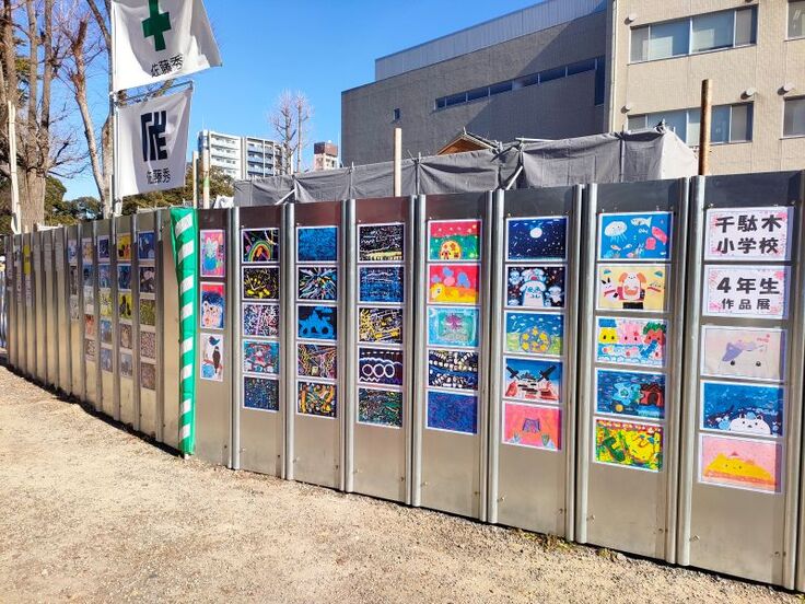 ちなみに、囲いには、現在、氏子地域の千駄木小学校の生徒さんの絵が飾られています。