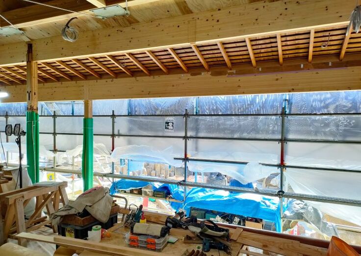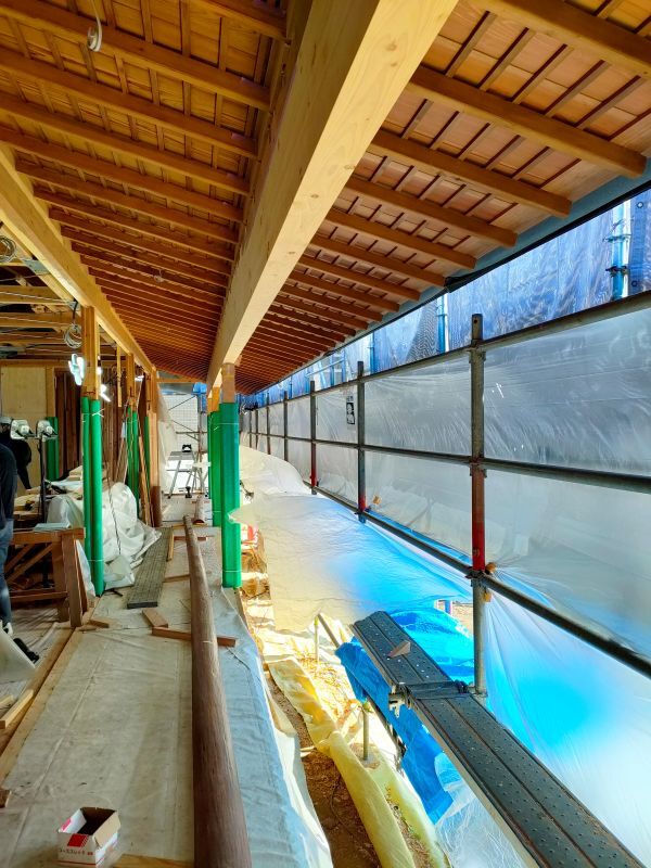 工事の方もだいぶ進んでまいりましたが、外側からだと屋根の一部分しか見えない状態になっており、現在の内部の様子も含め、ご報告いたします。
