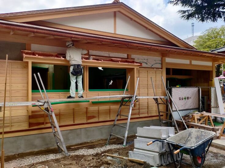 完成後は、神社の第二客殿として使用していきますが、皆様にもご利用いただける方法を引き続き検討中です。当面は自由に中をご見学いただける状況ではないのですが、何卒ご了承いただければと存じます。