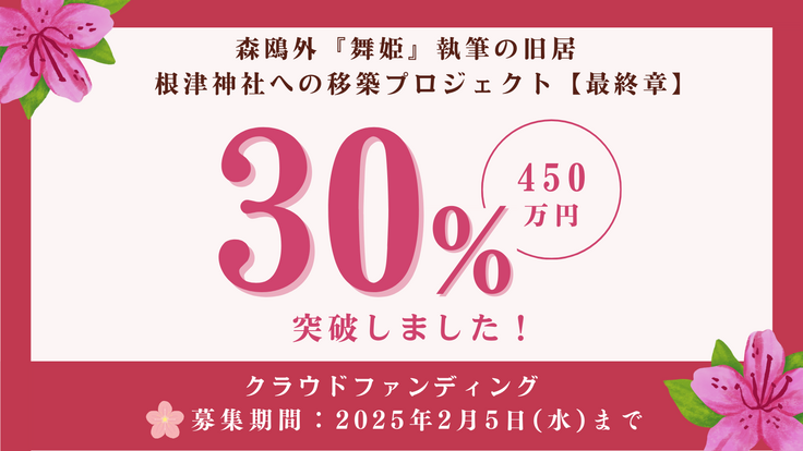 12月21日、目標金額の30%に到達いたしました。日々のご支援、そして応援の声に一同励まされております。心より感謝申し上げます。