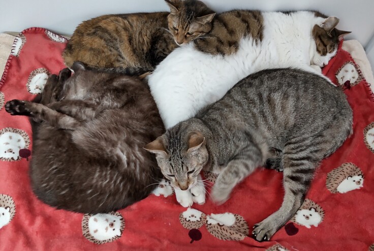 最後になりますが、現在9匹の高齢猫たち(11歳~13歳)の中で、毎週通院治療が必要な子が引き続きおります。治療中の子が多いですが、ご縁があれば里親様へと慎重につながせていただき、また、この子たちの最後の家となる可能性も考えながら、ゆるやかに穏やかに暮らしていけるように