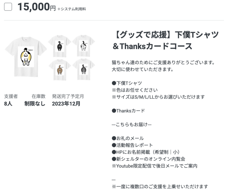 猫ちゃん達のためにご支援ありがとうございます。