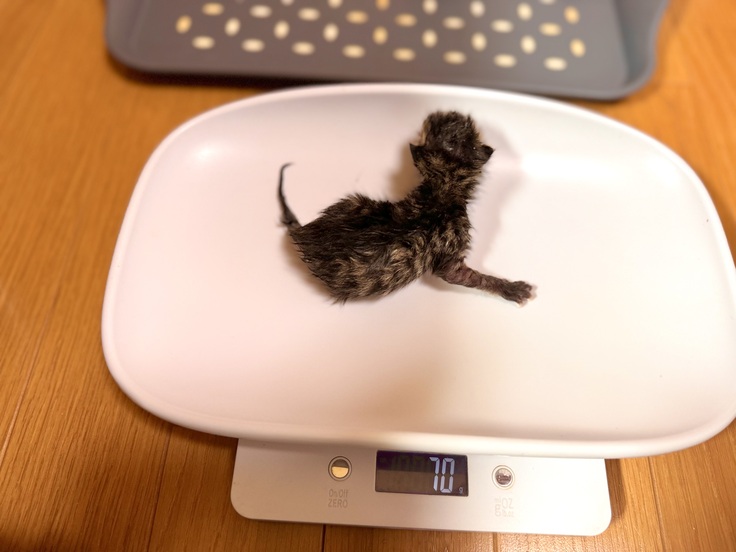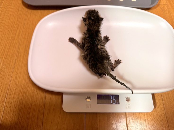 その内の1頭、1番小さい子を見たら10月13日に88gで収容されたのに、計ったら79gしかなくて…6日も経っているのに全然大きくなってなくて、むしろ体重が落ちていたのでこのまま帰ったら、きっと亡くなる!と思って引き出しました。